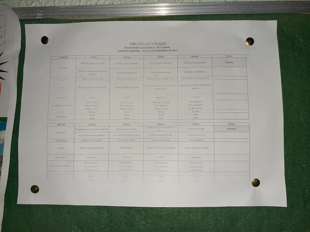 Restaurante Acadêmico IFCE Campus Sobral Menu